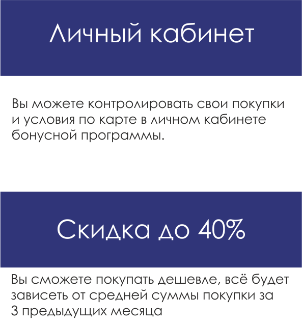 Скидка до 40%. Вы сможете покупать дешевле, всё будет зависеть от средней суммы закупа за 3 предыдущих месяца*: